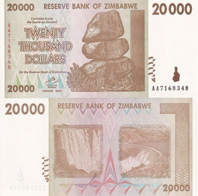 Zimbabwe 20000 Dollars 2008 P 73a Prefix AA UNC is backordered and will ship as soon as it is back in stock.