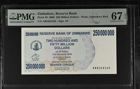 Zimbabwe 250 Billion Dollars 2008 P 59 Superb Gem UNC PMG 67 EPQ is backordered and will ship as soon as it is back in stock.