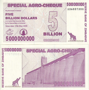 Zimbabwe 5 Billion Dollars 2008 P 61 UNC is backordered and will ship as soon as it is back in stock.