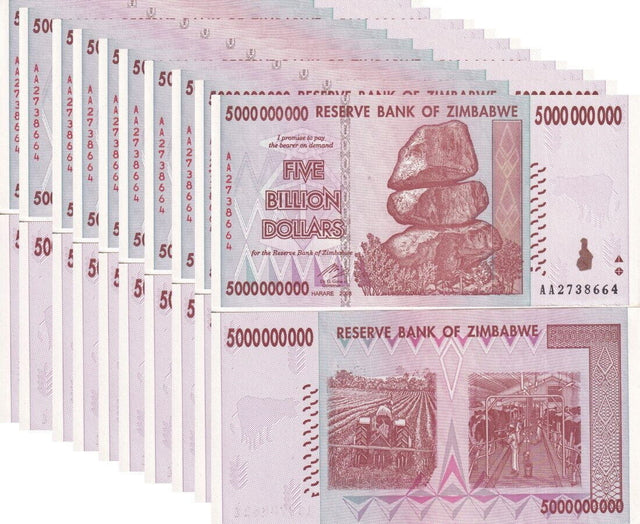 Zimbabwe 5 Billion Dollars 2008 P 84 AUnc LOT 10 PCS