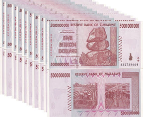 Zimbabwe 5 Billion Dollars 2008 P 84 AUnc LOT 10 PCS is backordered and will ship as soon as it is back in stock.