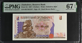 Zimbabwe 5 Dollars 1997 P 5 b Superb Gem UNC PMG 67 EPQ is backordered and will ship as soon as it is back in stock.