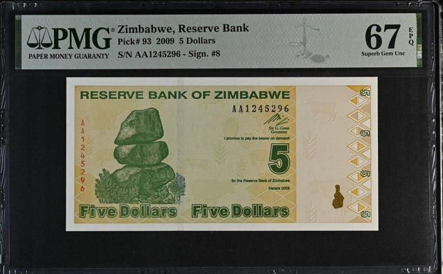 Zimbabwe 5 Dollars 2009 P 93 Superb Gem UNC PMG 67 EPQ