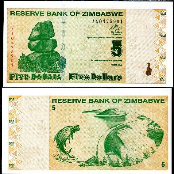 Zimbabwe 5 Dollars 2009 P 93 UNC