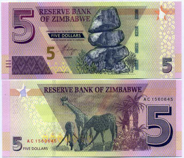 Zimbabwe 5 Dollars 2019 P 102 UNC