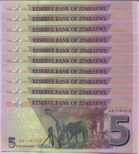 Zimbabwe 5 Dollars 2019 P 102 UNC LOT 10 PCS is backordered and will ship as soon as it is back in stock.