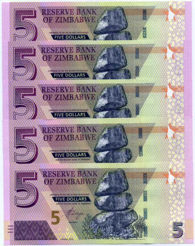 Zimbabwe 5 Dollars 2019 P 102 UNC LOT 5 PCS