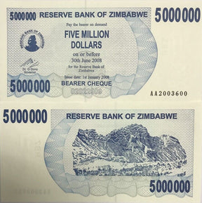 Zimbabwe 5 Million Dollars 2008 P 54 UNC is backordered and will ship as soon as it is back in stock.