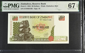 Zimbabwe 50 Dollars 1994 P 8 Superb Gem UNC PMG 67 EPQ is backordered and will ship as soon as it is back in stock.