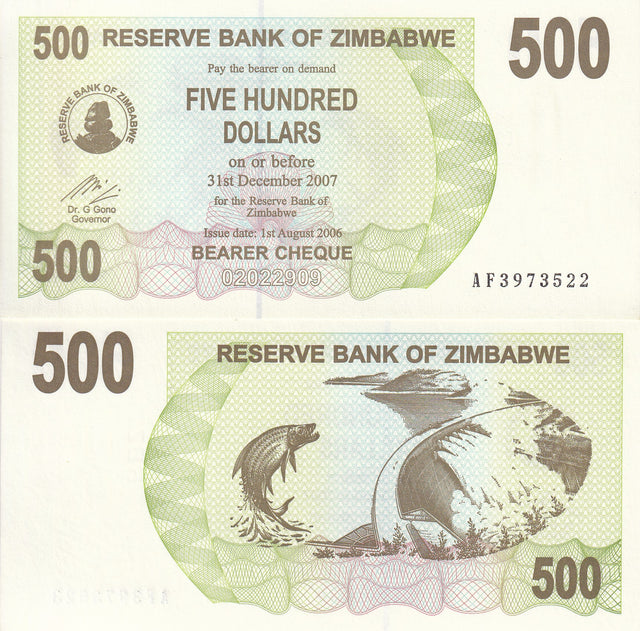 Zimbabwe 500 Dollars 2006 P 43 UNC