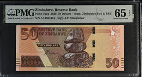 Zimbabwe 50 Dollars 2020 P 105 a Gem UNC PMG 65 EPQ is backordered and will ship as soon as it is back in stock.