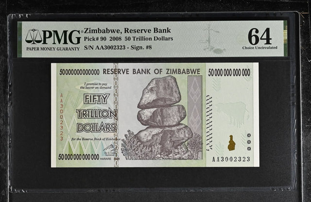 Zimbabwe 50 Trillion Dollars 2008 P 90 Choice UNC PMG 64