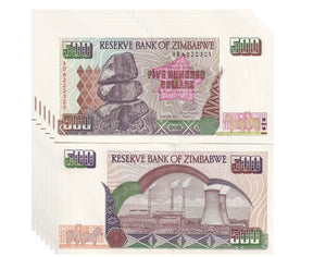 Zimbabwe 500 Dollars 2001 P 11 a UNC LOT 5 PCS