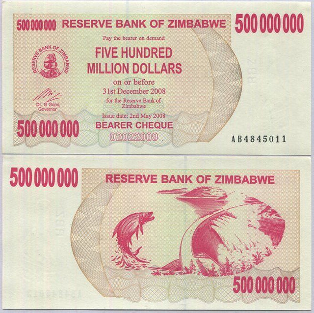 Zimbabwe 500 Million Dollars 2008 P 60 AUnc