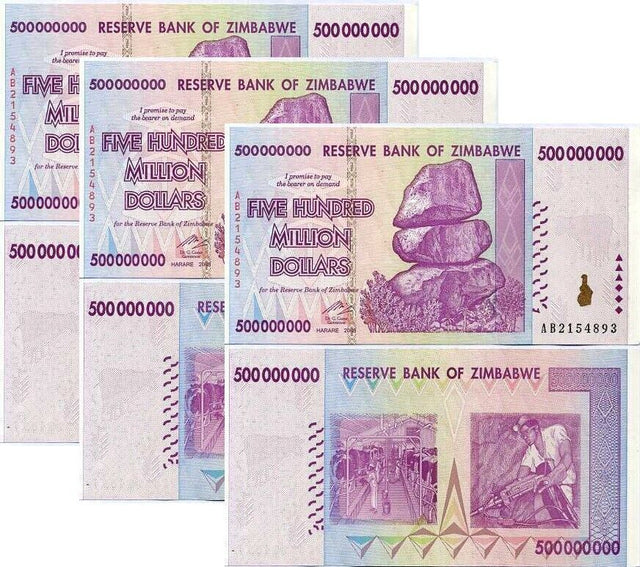 Zimbabwe 500 Million Dollars 2008 P 82 UNC LOT 3 PCS