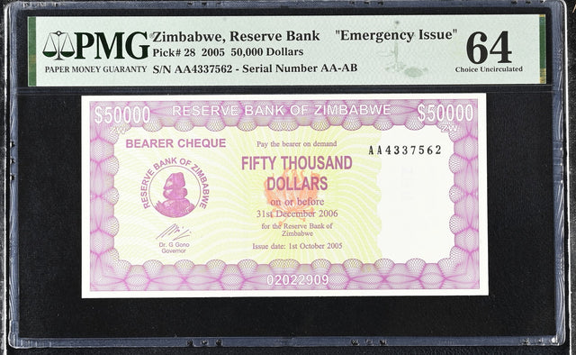 Zimbabwe 50000 Dollars 2005 P 28 AA Emergency Issue Choice UNC PMG 64