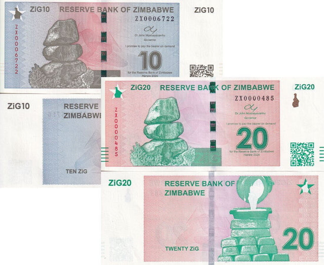 Zimbabwe SET 2,10 20 ZiG 2024 P NEW Replacement ZX Gold Backed UNC With QR Code