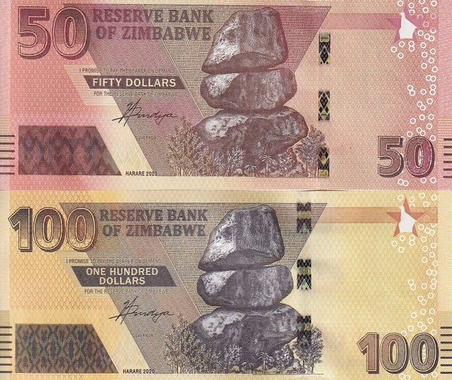 Zimbabwe Set 2 Pcs 50 100 Dollars 2020 P 105 106 UNC