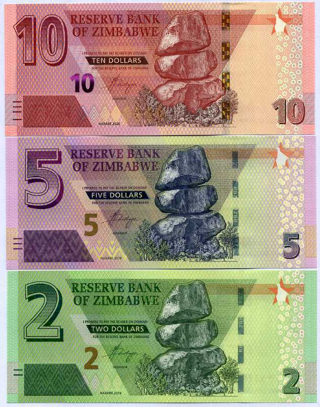 Zimbabwe Set 3 Pcs 2 5 10 Dollars 2019 2020 P 101 102 103 UNC