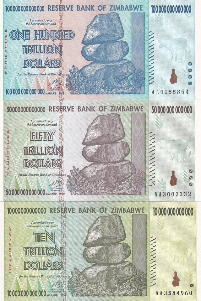 Zimbabwe SET 3 UNC 10 50 100 Trillion Dollars 2008 P 88 90 P 91