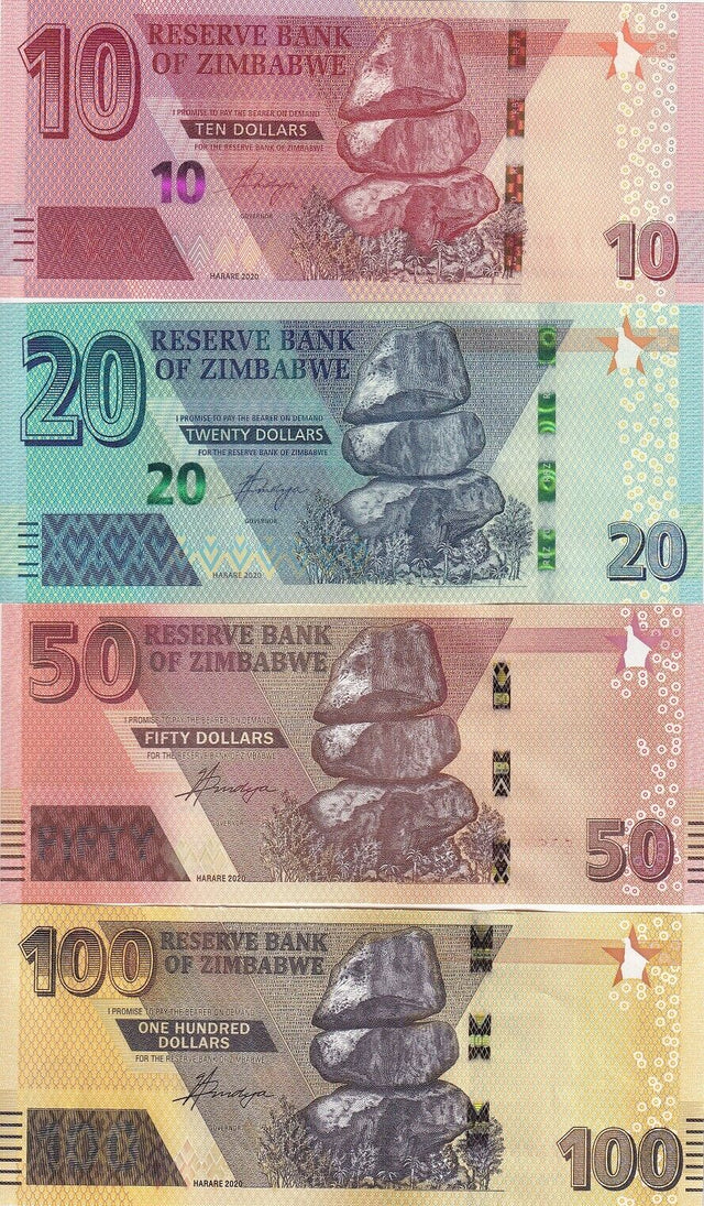 Zimbabwe Set 4 Pcs 10 20 50 100 Dollars 2020 P 103 104 P 105 P 106 UNC