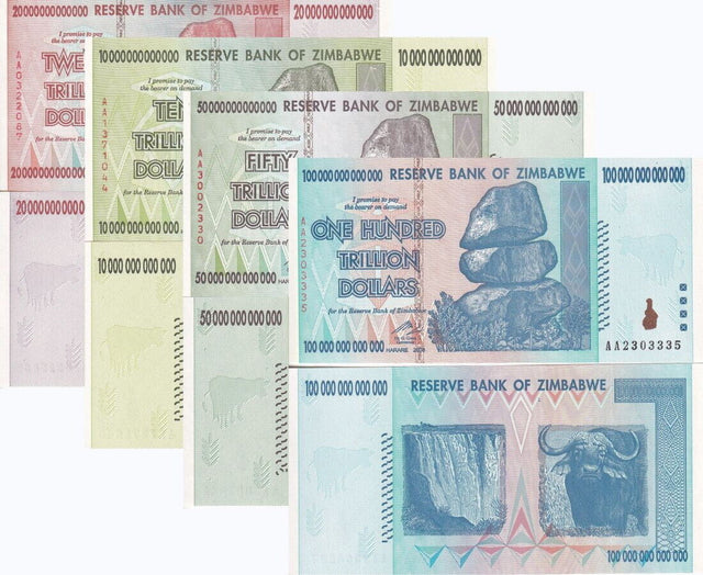 Zimbabwe SET 4 UNC 10 20 50 100 Trillion Dollars 2008 P 88 89 90 P 91
