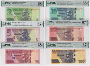 Zimbabwe Set 6; 2 5 10 -100 Dollars 2019-20 P 101-P 106 SuperbGem PMG 67 68 EPQ
